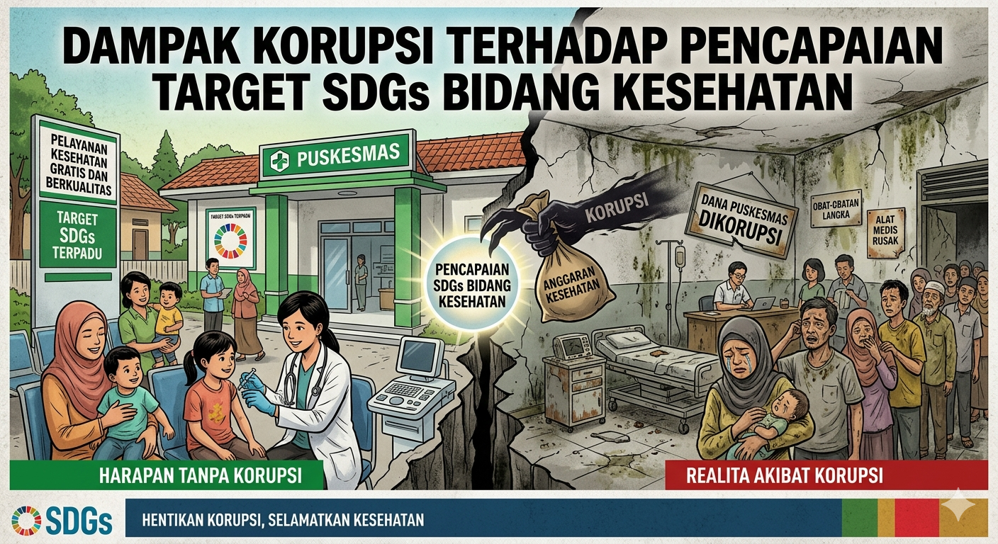 Dalam konteks pencapaian Sustainable Development Goals (SDGs), khususnya tujuan ketiga (Good Health and Well-being), korupsi menjadi hambatan serius (United Nations, 2015). SDGs menargetkan penurunan angka kematian ibu dan anak, pengendalian penyakit menular maupun tidak menular, serta peningkatan akses terhadap layanan kesehatan yang merata. Namun, praktik korupsi seperti penggelembungan harga obat, manipulasi pengadaan alat kesehatan, hingga penyalahgunaan dana program kesehatan, menyebabkan alokasi sumber daya menjadi tidak efektif. Akibatnya, indikator kesehatan yang menjadi tolok ukur pencapaian SDGs sulit diwujudkan.