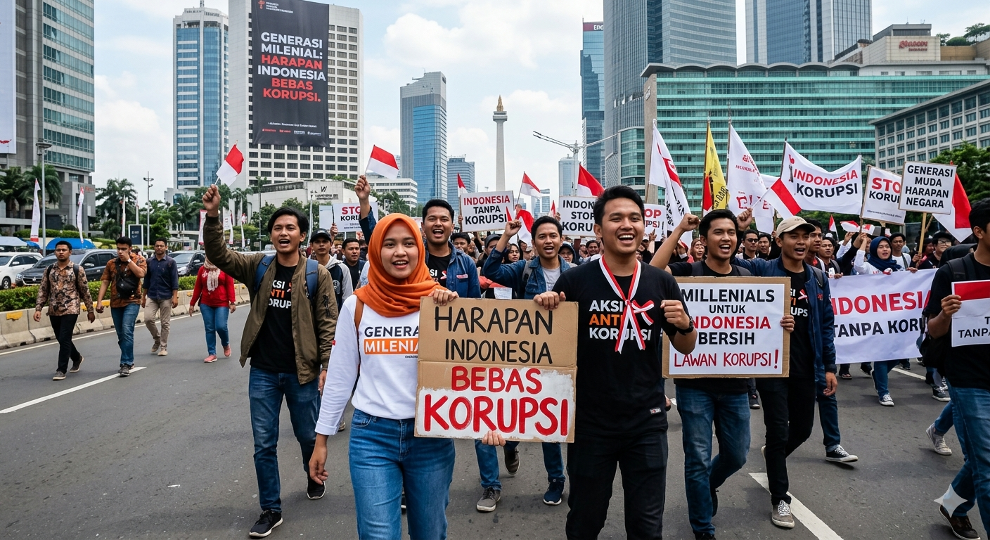 Di tengah situasi tersebut, secercah harapan muncul dari generasi milenial—mereka yang lahir antara 1981 hingga 1996, dan kini telah menjadi bagian nyata dari kehidupan bermasyarakat, dunia kerja, serta panggung politik Indonesia (Howe & Strauss, 2000). Generasi ini dibesarkan di era digital, terpapar informasi dari seluruh dunia, dan memiliki daya kritis yang jauh melampaui generasi sebelumnya (Prensky, 2001). Di tangan mereka tersimpan kunci untuk membuka jalan menuju Indonesia yang bebas dari korupsi.