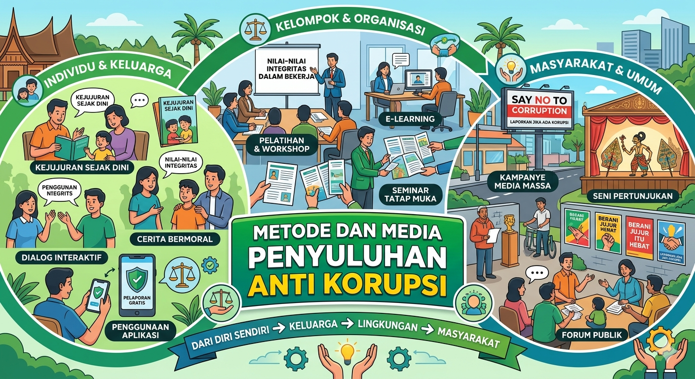 Namun demikian, efektivitas penyuluhan antikorupsi sangat bergantung pada ketepatan metode dan media yang digunakan. Pendekatan satu arah atau ceramah konvensional yang tidak mempertimbangkan karakteristik sasaran terbukti kurang efektif dalam mengubah perilaku secara nyata. Oleh karena itu, pembahasan mengenai ragam metode dan media penyuluhan antikorupsi mulai dari pendekatan individual, kelompok, hingga komunitas luas menjadi sangat relevan dan mendesak untuk dikaji secara mendalam demi mewujudkan gerakan antikorupsi yang nyata dan berdampak luas.