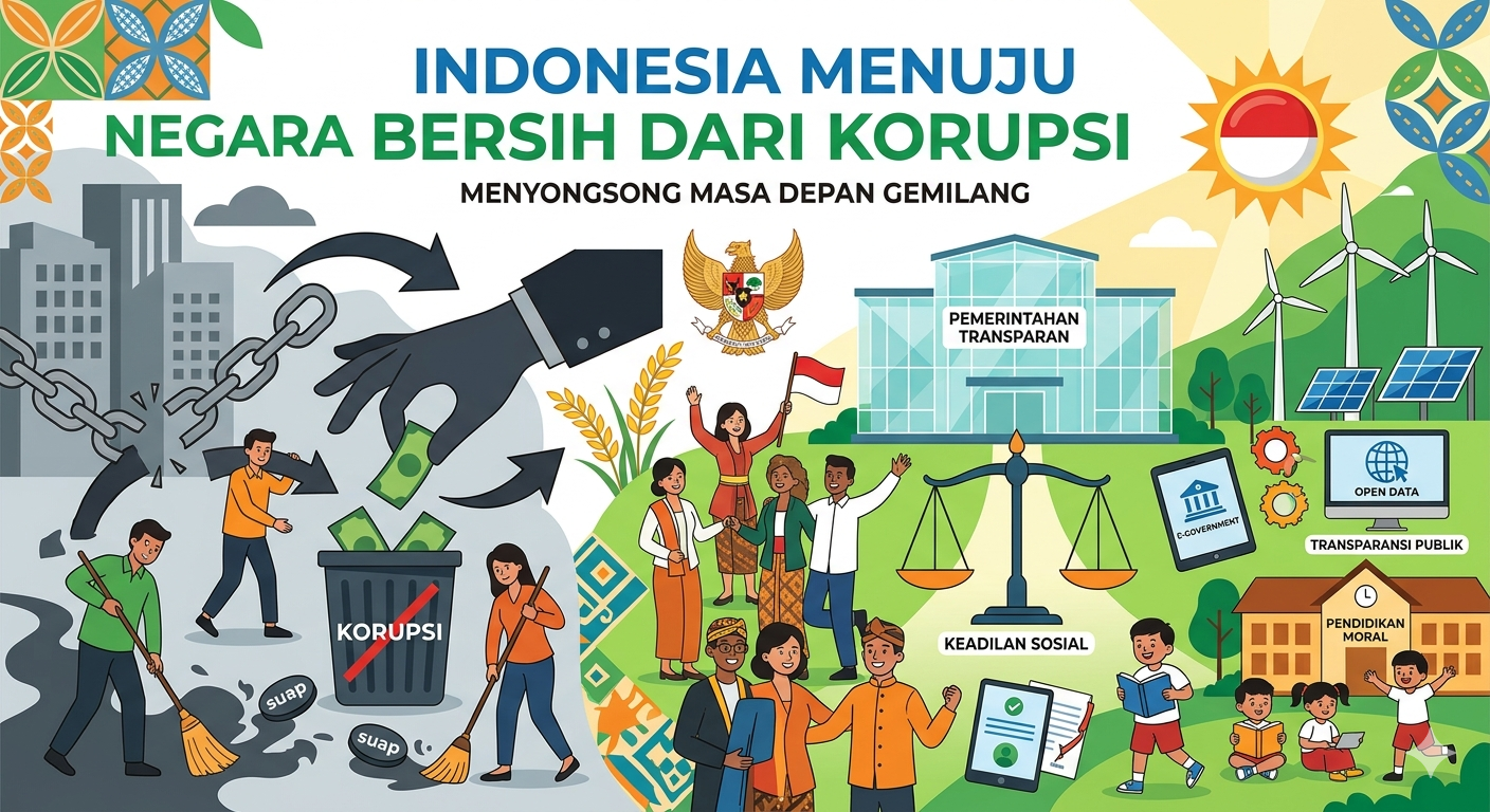 Indonesia memiliki potensi riil untuk bertransformasi menjadi negara yang bersih dari korupsi melalui tiga pilar utama: percepatan digitalisasi birokrasi, penguatan transparansi berbasis partisipasi masyarakat, serta reformasi hukum yang berorientasi pada pemiskinan koruptor. Pernyataan ini didasarkan pada prinsip bahwa korupsi bukanlah takdir kultural, melainkan kegagalan sistemik yang dapat diperbaiki melalui kemauan politik yang kuat dan sistem pengawasan yang kedap celah (Prasojo, 2020).