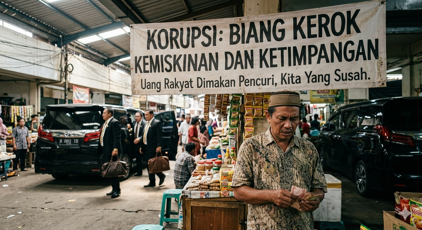 Korupsi adalah biang kerok utama kemiskinan struktural dan ketimpangan sosial-ekonomi di Indonesia. Penulis berpendapat secara tegas bahwa selama korupsi masih mengakar dalam sistem pemerintahan dan birokrasi, tidak ada satu pun program pembangunan—sekomprehensif dan seambisus apa pun—yang akan mampu mewujudkan keadilan sosial secara nyata. Korupsi tidak hanya mencuri uang negara, tetapi juga mencuri masa depan generasi penerus bangsa, melemahkan kepercayaan publik terhadap institusi negara, dan melanggengkan sistem yang menguntungkan segelintir elite di atas penderitaan mayoritas rakyat. Oleh karena itu, pemberantasan korupsi secara serius, sistematis, dan berkesinambungan adalah prasyarat utama—bukan sekadar pelengkap—bagi terwujudnya Indonesia yang adil, makmur, dan berdaulat.