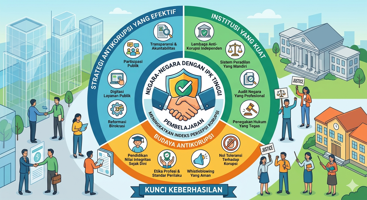 Analisis terhadap negara-negara dengan IPK tinggi membuktikan bahwa keberhasilan dalam menekan korupsi merupakan hasil dari pendekatan multidimensi yang melibatkan reformasi kelembagaan, transparansi birokrasi, dan transformasi budaya secara simultan. Tidak ada satu resep tunggal yang berlaku universal; setiap negara harus mengadaptasi pembelajaran ini sesuai konteks historis, budaya, dan kelembagaannya masing-masing.